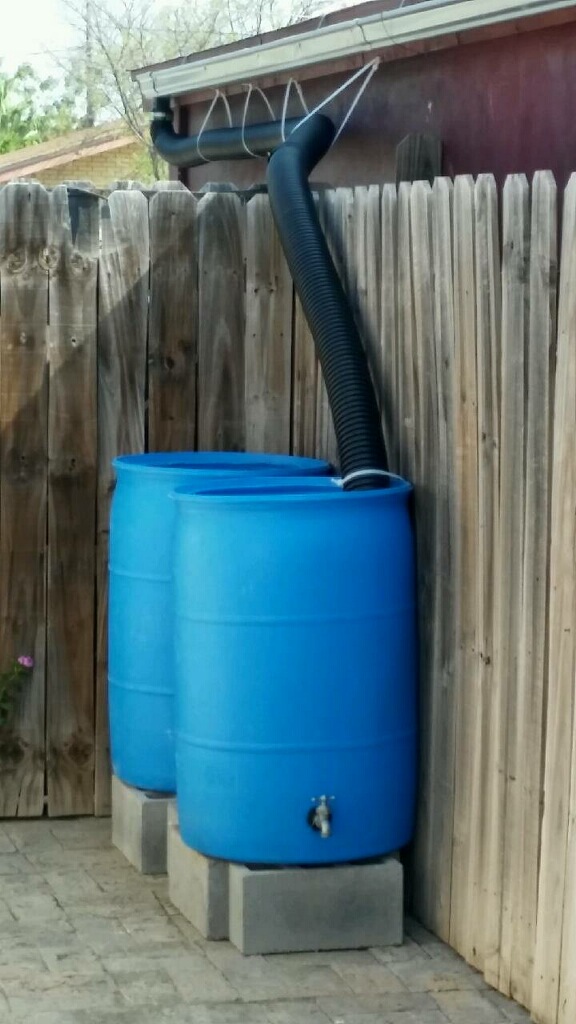 The 2x10s and wood screws for the 4’ x 8’ raised bed cost her $23. She spent another $20 on sacks of cow manure, compost, and garden soil. She made a composter from an $11 plastic barrel she bought at the flea market, and bought two more barrels for a rainwater collection system that came in for around $84.