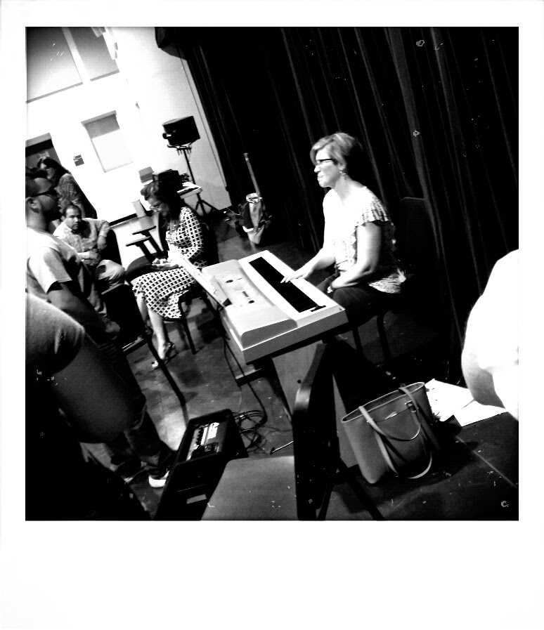Dana Crabtree, vocal director for the show, and as cheery as a Christmas candle, begins a new tune at the piano. Then, a new combo is called up, as the previous group sits.