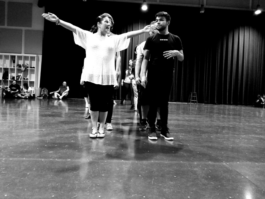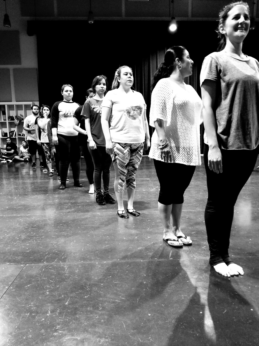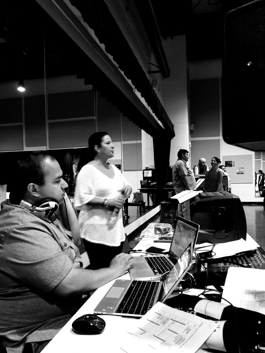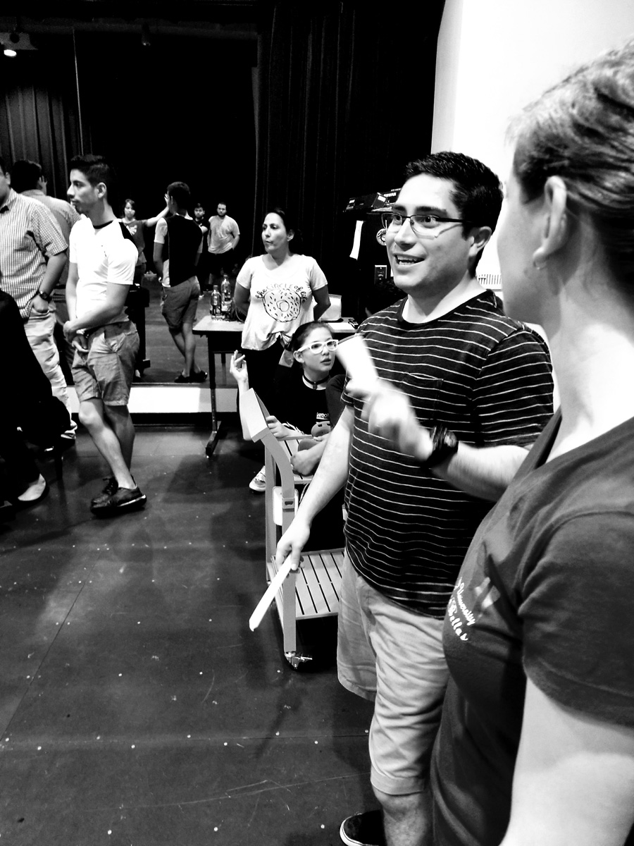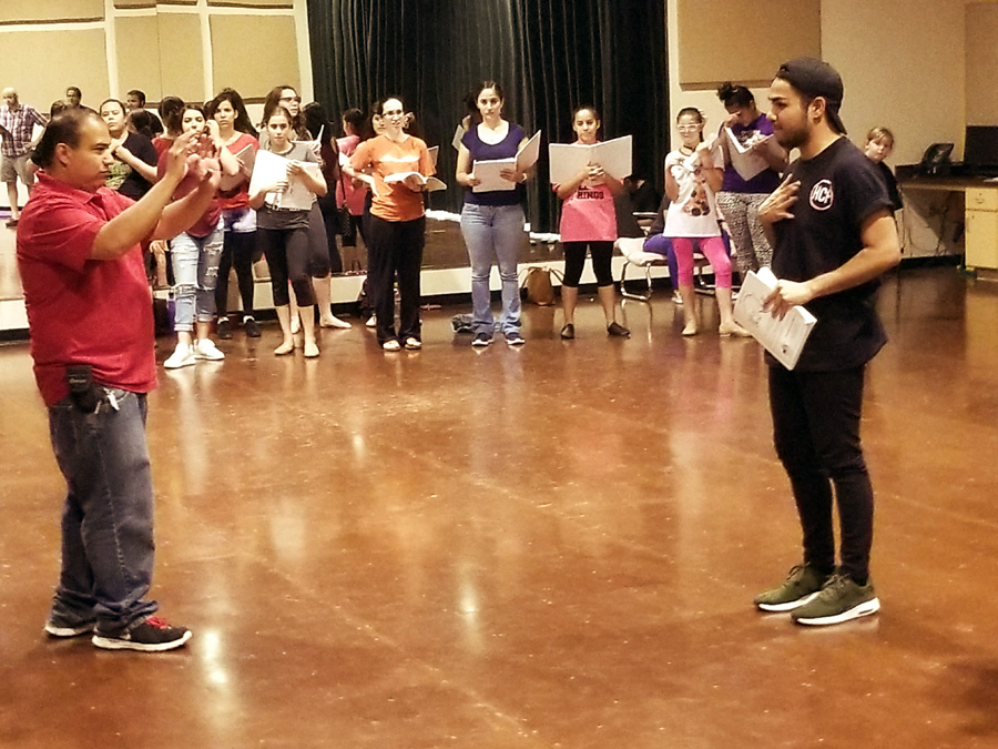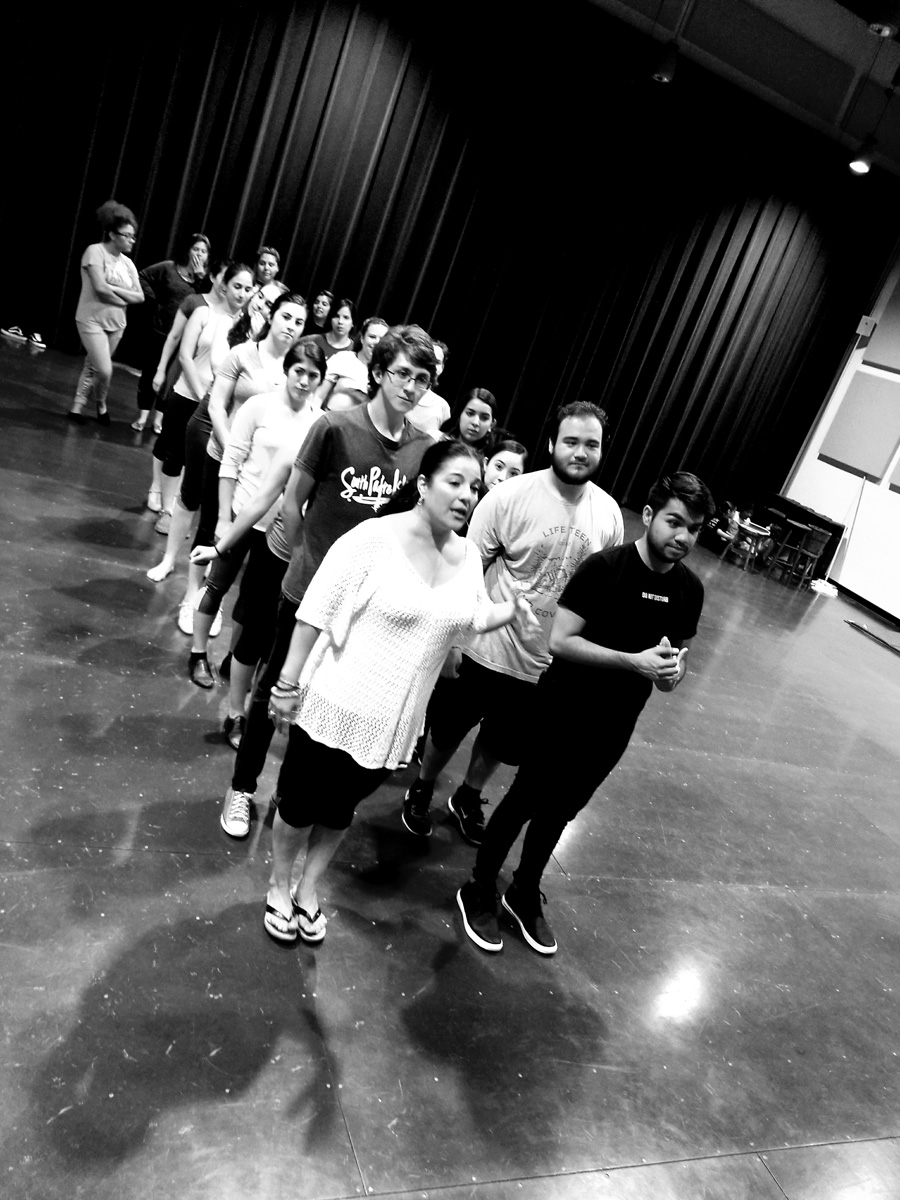 Assistant stage managers Javier Sanchez and Ryan Duncan, co-producers Linda Howland and Karen Mejia, co-directors Daniel Castillo and Vernon Carroll have watched the exercise.