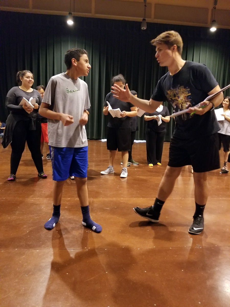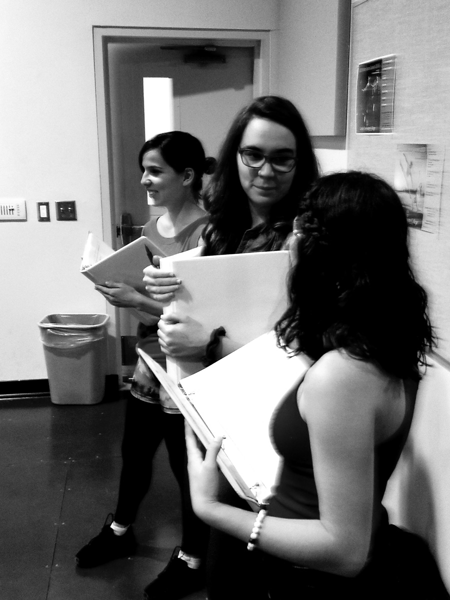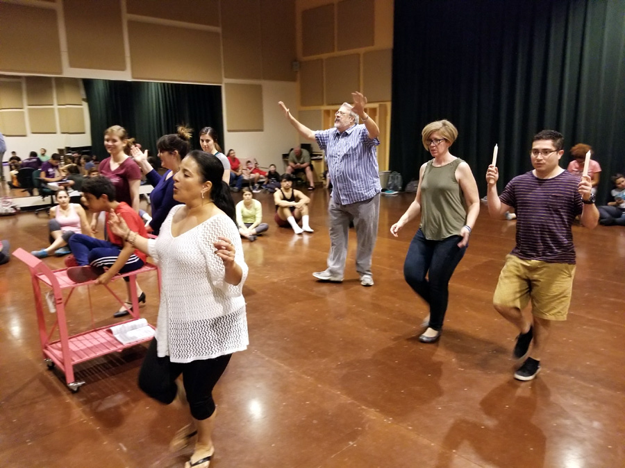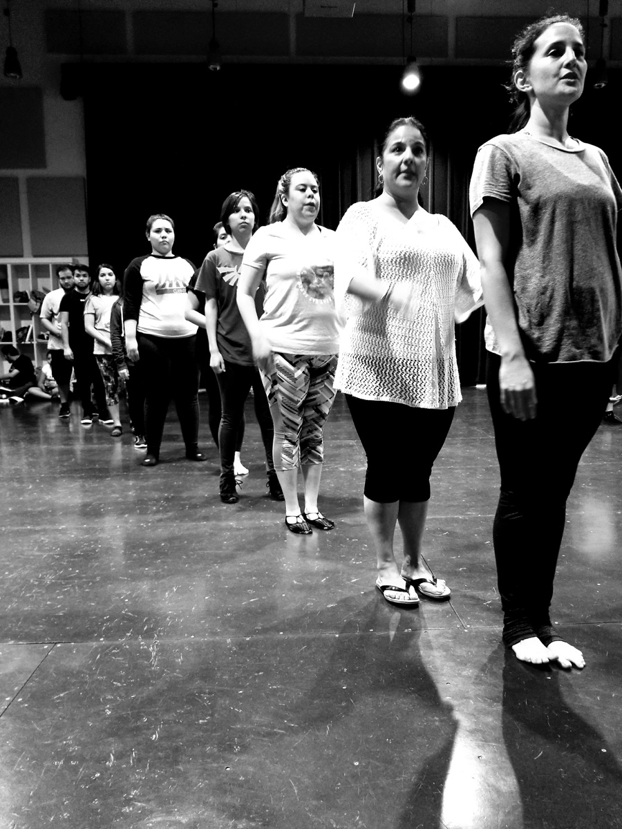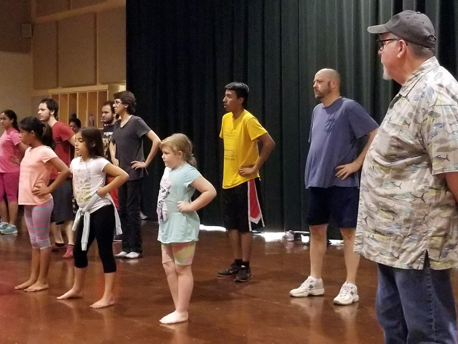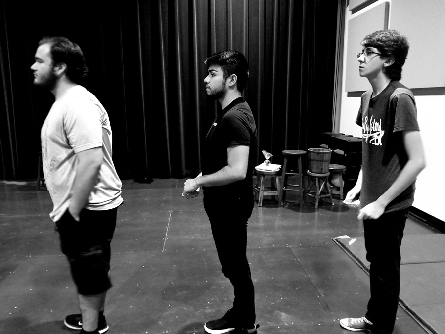 Assistant stage managers Javier Sanchez and Ryan Duncan, co-producers Linda Howland and Karen Mejia, co-directors Daniel Castillo and Vernon Carroll have watched the exercise.