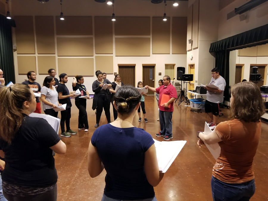 Inside the dance studio of the Guadalupe and Lilia Martinez Visual and Performing Arts Center on the Laredo Community College campus, Beauty and the Beast choreographer Cristina Greco reads the room filled with the entire cast of the production.