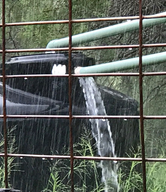 The gurgle of water moving quickly off the metal roofs and into rain barrels and storage tanks, the birdcalls that start tentatively to alert to the end of a particular shower — that is music.