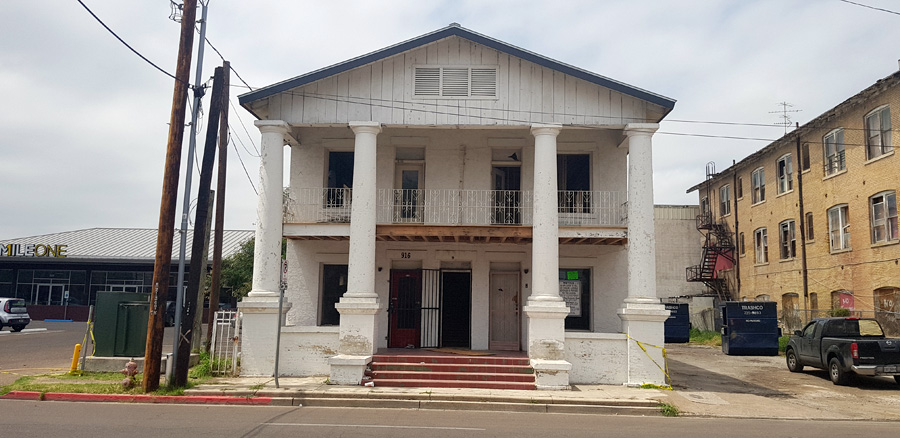 De casualidad I asked Viviana Frank if she knew what was up with the two-story Doric columned treasure whose window apertures had been boarded up.