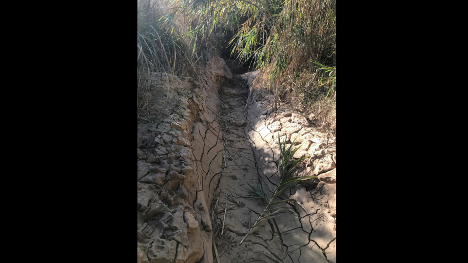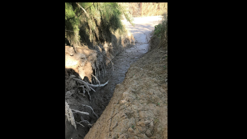 Alex Gutierrez, whose family has owned property on the banks of Santa Isabel Creek for 40 years, recalls a creek channel that “once flowed clean, free, and navigable.” He has enjoyed kayaking and fishing there with his two sons, but has noticed noted that there are not as many fish in the creek as there once were, because the flow from the river is completely blocked by the thick, wide, and deep deposit of sand, gravel, and perhaps concrete.