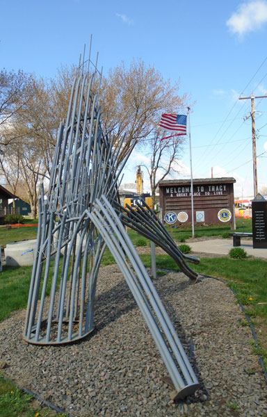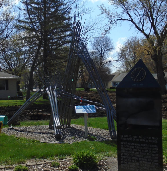 I slowed to 35 as I rolled through Tracy and passed the small metal sculpture of a tornado-twisted tree commemorating the nine fatalities of an F5 that ripped through town in 1968. Another seven miles west, I braked at the four-way stop where U.S. 14 intersects U.S. 59, and six miles later I bent around the south shore of Lake Yankton in Balaton, MN. Already the land had begun to rise out of the Minnesota River watershed behind me. The change is so gradual as to be almost imperceptible, but in those twenty miles west I’d already gained over 320 feet of elevation; in the next twenty-two miles from Balaton to Lake Benton, about ten miles from the state line, the land rises another 220 feet. This is the Coteau des Prairies, a long tabletop stretching down the west side of Minnesota where a glacier creeping south split, carved out the land on either side, and left this “Mountain of the Prairies” behind. All water east of this ridge flows toward the Minnesota River; water to the west flows toward the Big Sioux River and then south to the Missouri.